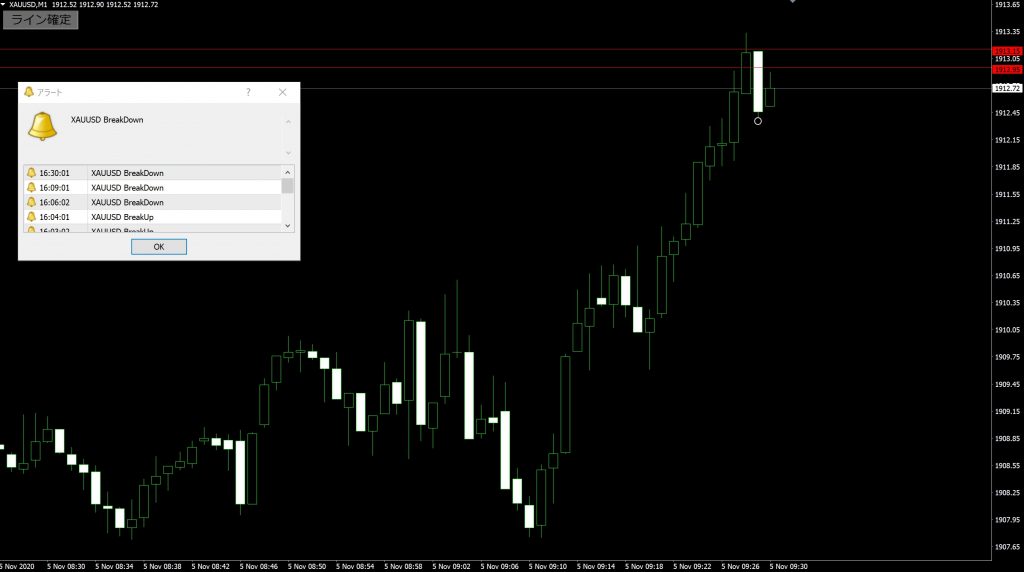 レンジブレイクが確定した際