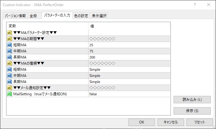 移動平均の設定で